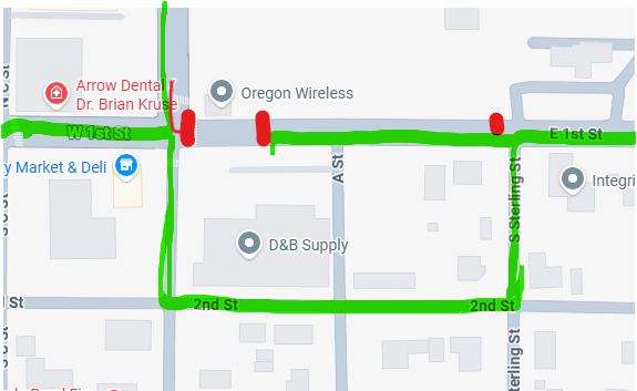 A detour will be set up for those headed West to Island City/La Grande: turn left (South) on Sterling, then make right turn (west) on E. 2nd Street, then right (north) onto McAlistser Road.